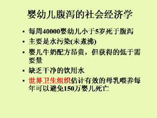 全世界每周有40000个婴儿由于胃肠炎致死。绝大多数儿童在5岁以下,在发展中国家那里家庭的平均收入每年低于500美元。