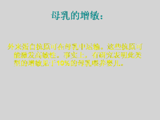 另一个假说是母乳的增敏。外来蛋白抗原可在母乳中运输。这些抗原可能激发高敏性。事实上,