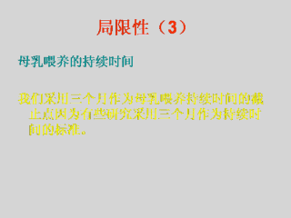 除了排除度,母乳喂养的持续时间应该在此研究中考虑。我们采用三个月作为母乳喂养持续时间