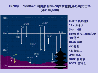 在其它亚洲国家,比如新加波和中国,冠心病死亡率没多大变化。