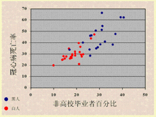 冠心病死亡率(ICD 410-414,429.2)与教育程度呈强相关。(Pearson