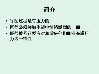 医师必须不停的对患者及家属的需求做出反应并扩大自己的情绪资源以照料和关心他人。与病人的会面是个有压力的过程,而且医师不得不经常进入自己的内心深处来给与那些并不能回给或表达感激的人。病人和社会期望要求从医者必须有确定性,而医学知识本身却存在着一些限制和不确定性。医师每天都会被号召要应对和适应他们职业充满压力这一特性。他们情绪储存经常被支出,却很少很难被补充。有一些医师的应对能力不强,感情储存被透支。对于这些医师,疲惫成了现实。