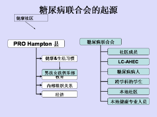糖尿病联合会开始于PRO Hampton的健康社区计划。南卡纳罗来州是全美糖尿病发病率和死亡率最高的五个州之一,这个数据对公共卫生领域制定目标非常重要。同样重要的是社区渴望改变的呼声,1997年,Hampton县居民参与一个调查,其中问到他们最关心的问题。糖尿病被认为是一项主要健康议题,PRO Hampton县和生活方式专项工作组(Lifestyle Task Force)实施了一个项目叫“糖尿病联合会”(Diabetes connection).这项正在进行的项目是社区成员、本地和地区健康专业人员和具有与糖尿病作斗争经验的糖尿病患者的协作。目标是减少这个糖尿病流行第二高地区的发病率和死亡率。