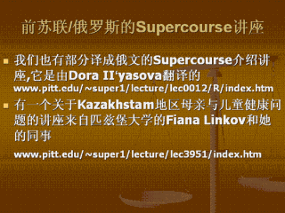还有五个来自 Irina V. McKeehan Campbell的讲座(英),关于莫斯科市在健康问题构架方面的不公正和不平等.