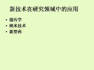 技术在其他方面也在改变着医学的前景。现在,新技术正在带来遗传、纳米技术、新型药等方面