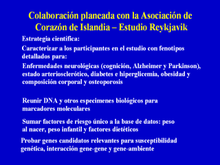 estudio cohorte en Islandia, el estudio Reykjavik, bajo supervisión de la