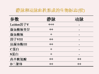 随着我们在静动脉血栓的生物标志方面积累越来越多的数据,有些事实已经变得很明显:一些生物标志诸如高半胱氨酸、D二聚体可以同时鉴定静脉和动脉血栓的形成;而大多数标志只能鉴定动脉血拴(如高敏C反应蛋白)或静脉血栓(如Leiden因子V)。