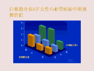 白细胞介素6(IL-6)是一个多效性细胞因子,由白细胞、内皮细胞和其他许多细胞类型产生。白细胞介素是一种分泌性糖蛋白,可以与gp130和gp80(IL-6r)复合体结合,被认为可以调节肝产生其他急性期反应物。白细胞介素也被注意到是由缺血再灌注损伤诱导产生的。在“妇女健康研究”中白细胞介素6的水平和上升的冠心病的发生率紧密相关联,在女性中第四个水平的白细胞介素6的差额比率是2.2(置信区间为1.1?.3)。那些胆固醇总量处于中间水平的女性,如果她们白细胞介素6为高水平,那么她们患病的几率就有所增加。但是在该研究中,当其他引发心血管疾病的危险因子调整以后,白细胞介素6不是一个独立的预测因子。
