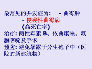 曲霉肿多在肺部有空洞存在时(肺结核、肺气肿)形成;如无空洞存在,曲霉可引起肺部组织侵袭性感染(在组织、血管间播散);可播散至其它器官。