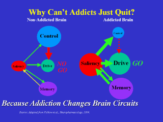 drug abuse, losing much of its inhibitory power over the circuits that drive