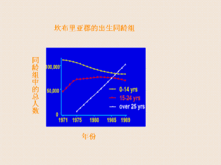 注意,这个同龄组包括自1950年以来出生的所有儿童,因此,在1975年以前没有人超过25岁,而1975年后,超过25岁的人逐年增加.