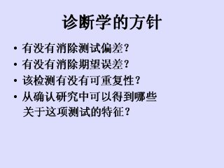 所谓期望误差,就是说当病理学家或其他解释这个诊断标本的时候,他们会下意识地受到一些知识的影响,这些知识与这个案例的某些特征有关,例如在解释心电图的时候出现的胸痛。当我们用金标准来评价一种诊断检测的时候,所有这些评价都应该是盲测。