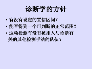 一般来讲,我们诊断高血压是通过检测一系列静息血压数据来做的。下面让我们把这个和诊断冠状动脉狭窄的顺序做一个比较。首先,我们选择有典型心绞痛病史的病人,然后我们通常会做一个静息的心电图、一个运动心电图,有时我们还会对心脏做一个放射性的核扫描。大多数来做冠脉造影的病人都是在这些预先检查中结果异常。如果你让100个普通人去做冠脉造影,检测结果与那些已经由预备检查确认了的病人群体的检查结果相比,阳性检出率和阴性检出率都有很大不同。这也就说明了冠脉造影术作为一项诊断检测,除非这些图像与总体的诊断工作相联系,否则它给出的结果是毫无意义的。