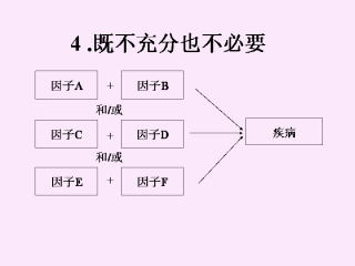 因此,没有因子能单独引发疾病(都不是充分条件),并非所有的因子对于引发疾病是必要的(只有少数亦能引发疾病)