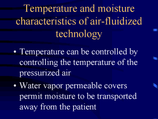 severe burns, air-fluidized beds have been known to cause dehydration. The variable level