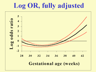 function of GA. Adjusted for sex, maternal smoking, maternal age, mother's health, parity,