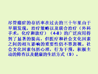 许多癌症如睾丸癌,儿童白血病及Hodgkin病目前认为是已经可以治愈的;而普通的癌症患者如乳腺癌,结肠癌等也可寄希望于其不断增长的无病生存期和总体生存率;儿目前尚无法治愈的癌症患者则可通过更好的疾病控制获得生存时间的延长。