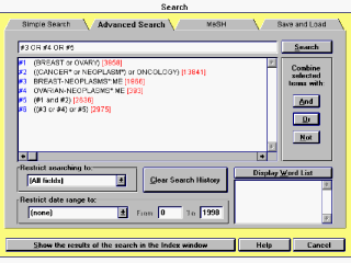 Las funciones de búsqueda Pantalla de búsqueda avanzada. Permite búsqueda más saofisticada a ser reunida, combinado grupos, limitando por fecha, búsqueda usando descriptores de campo, etc. |