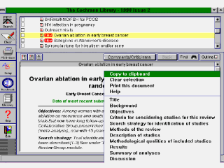 | Moviéndose en el documento – el botón outline. Algunos documentos son largos, así que el botón outline permite navegación rápida en los documentos.- puede ser usado en todas las secciones de la Librería Cochrane. |