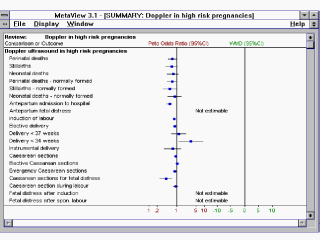 | El diagrama resumido de Razones de Momios para todas las comparaciones y resultados se observaron en la revisión sistemática. Doble click sobre una comparación/resultado para mostrar el diagrama detallado de Razón de Momios. |