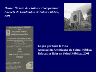 Premio de Profesor Excepcional por la Escuela de Graduados de Salud Pública.
