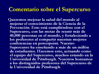 | Prevención es la clave de la buena salud, pero actualmente hay pocas personas entrenadas en salud global. Hay 7 veces más empresarios de funerarias que científicos entrenados en salud global. El Supercurso fue diseñado para apoyar la enseñanza en el mundo de la salud global. |
