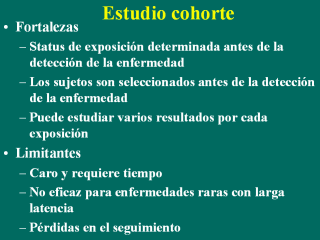 enfermedad – no hay ambigüedad temporal -- Medición de la exposición antes de la enfermedad – así la enfermedad no puede influenciar la cantidad de error con el cual, status de exposición es medido. -- La selección de sujetos es antes de la enfermedad, la enfermedad no influencia a los sujetos |
