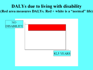 some loss of physical functioning, her DALY loss could be depicted as the red area in the