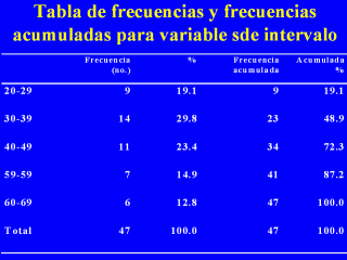 acumuladas para una variable de intervalo es exactamente igual que para una