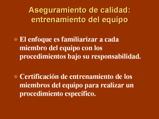 instrumentos, etc. El entrenamiento debería involucrar técnicos