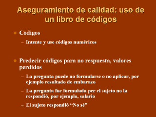 como registrar los datos desaparecidos SPSS puede definir ciertos valores como desaparecidos. Recuerde ser consistente con el manejo de información perdida y sus códigos Predecir los códigos a usar en datos perdidos y consérvelo consistente con el formato, por ejemplo, 9, 99, 999 para “No sé”/ 8, 98, 998 para no respuesta / 7, 87, 997 para no aplicable |