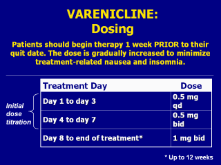 insomnia. The recommended dose of varenicline is 1mg bid (taken as one 1mg