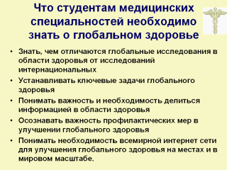 изучать важную концепцию глобального здоровья. Глобальное здоровье
