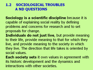 women, medicine, urban and rural sociologies, worker sociology, and so on. When a natural disaster occurs, it often happens that members of society are ready to assist in victims’ rescue at the very start of the disaster. This immediate collaboration later comes under the city’s authority. When citizens do not collaborate, it becomes a problem subject to study, since it goes against the unity and conservation of society. To deal with this, it will be necessary to determine the reasons that cause such lack of cooperation. A possible explanation can be found for the case of lack of cooperation, associated with contemporary individualism, in which only one’s own personal situation matters. Moreover, if he/she is satisfied with abundance, social welfare and richness, there will not be any motivation to participate in social cooperative activities. |