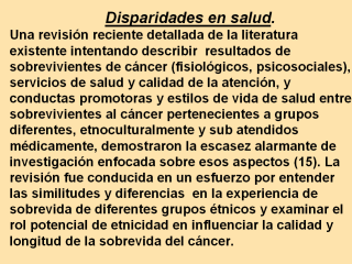 de diferencias en riesgo de cáncer y sobrevida; poco esfuerzo se ha hecho