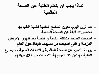 تم اعداد هﺫه المحاضرات من اعضاء الجامعات و الطلبة بكليات الطب و مدارس الصحة العامة حول العالم