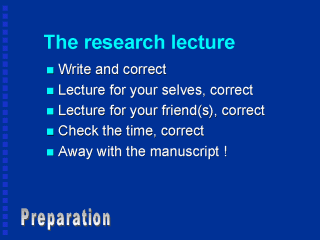 students are nervous but a strategy and a good deal of rehersal will help Dont read from the manuscript - but some people like To keep the manuscript in the pocket during the lecture! |