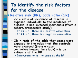 control studies. Examples of odds ratio calculations are described on slide