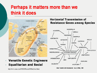 Horizontal Transfer of Resistance Genes by plasmids, integrons,