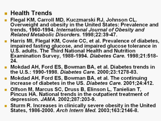 | Demographic and Social Trends Casper LM, Bianchi SM; Continuity & Change in the American Family. Thousand Oaks, CA: Sage; 2002. Cohen PN, Bianchi SM. Marriage, children, and women's employment: What do we know? Monthly Labor Review. 1999;122(12):22-31. Mishel L, Bernstein J, Schmitt J; Economic Policy Institute. The State of Working America 2000-01. Ithaca, NY: ILR Press, an imprint of Cornell University Press; 2000. US Department of Labor. Women in the labor force: A databook. Bureau of Labor Statistics; 2004. The Time-Bind Hypothesis Gross LS, Li L, Ford ES, Liu S. Increased consumption of refined carbohydrates and the epidemic of type 2 diabetes in the United States: an ecologic assessment. American Journal of Clinical Nutrition. 2004;79:774-779. Mattingly MJ, Bianchi SM. Gender Differences in the Quantity and Quality of Free Time: The U.S. Experience. Social Forces. 2003;81:999-1030. Nomaguchi KM, Bianchi SM. Exercise time: Gender differences in the effects of marriage, parenthood, and employment. Journal of Marriage and Family. 2004;66(2):413-430. Jeffery RW, French SA. Epidemic obesity in the United States: Are fast foods and television viewing contributing? American Journal of Public Health. 1998;88:277-280. |