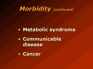 are understood to be part of a “metabolic syndrome” with similar underlying causes In general, rates of communicable disease are markedly higher in Indigenous compared to non-Indigenous people. Particularly high rates have been observed for tuberculosis, meningococcal infection, syphilis and gonococcal infection Incidence rates for cancer are relatively low for Indigenous males compared to non-Indigenous males. However, incidence rates of cancer in Indigenous females are very similar to that for non-Indigenous females. The higher mortality rates among Indigenous people are a result of more advanced tumours at the time of diagnosis, and lower survival rates for primary cancers Lung, cervical and liver cancer are particularly high among Indigenous people |