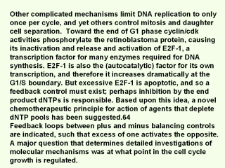 kinase mTor; locking its activity with rapamycin stops cells in G1.68 This