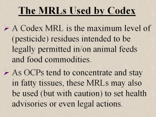 pesticides (OCPs), the MRL values set forth by the Codex Alimentarius