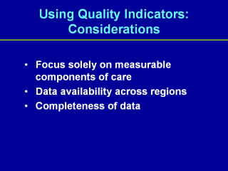 simultaneously. Indicators that can be used to make comparisons between regions are determined by the available data. In Manitoba, for example, in order to include physicians outside Winnipeg, indicators were limited to those not requiring lab data, which are only available for Winnipeg. Physician data derive from billing claims, which have been shown to be reliable for services provided by fee-for-service physicians.7,8 Reliability of shadow billings by physicians paid by alternate plans, however, is not well-established. Under-billing by these physicians may make them appear to be providing poorer quality care than is the case. This is particularly true for rural area as most non-fee-for-service physicians practice outside of the larger urban areas in Manitoba. 7 Roos LL, Mustard CA, Nicol JP, McLerran DF, Malenka DJ, Young TK, Cohen MM. Registries and administrative data: Organization and accuracy. Medical Care 1993;31(3):201-12.8 Muhajarine N, Mustard C, Roos LL, Young TK, and Gelskey DE. Comparison of survey and physician claims data for detecting hypertension.” Journal of Clinical Epidemiology 1997;50(60):711-8. |