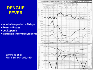 | In 1929, U.S. Army volunteers in the Philippines were infected serially via bites of dengue 1-infected Aedes aegypti and then carefully studied clinically. See Halstead SB Am J Trop Med Hyg 23:974-982, 1974. |
