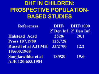 | The Halstead study was conducted in Bangkok in 1962-4, that of Russel et al on the island of Kah Samui in the Gulf of Siam, Sangkawibha is a neutralization test monitored cohort living in Rayong, Thailand in 1980. |