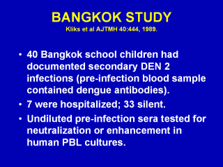 study of Bangkok school children, 40 of whom experienced a secondary dengue