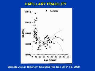 most fragile capillaries. Capillary walls strengthen in young adults but