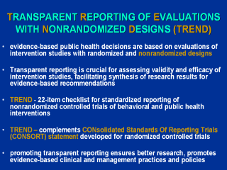 been adopted as a framework for the reporting of RCTs by a large number of medical, clinical, and psychological journals (153, according to http://www.consort-statement.org, as of September 16, 2003). Use of the CONSORT statement has improved the quality of RCT reports over the past several years. There is yet, however, no agreed-upon framework for the transparent reporting of nonrandomized research evaluations. |
