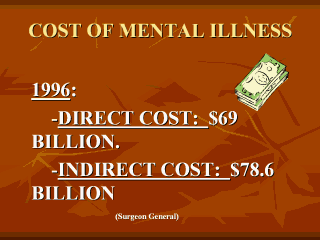of health spending. Do not include another $17.7 billion for Alzheimer’s and another $12.6 billion for substance abuse. Indirect costs include lost productivity at work, school, home. |
